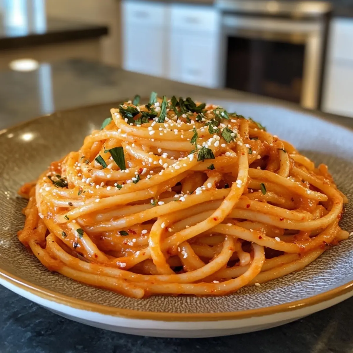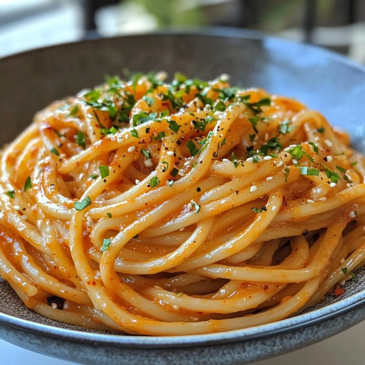- Serve: Plate the creamy gochujang pasta and finish with a sprinkle of chopped parsley and red pepper flakes for an extra kick.