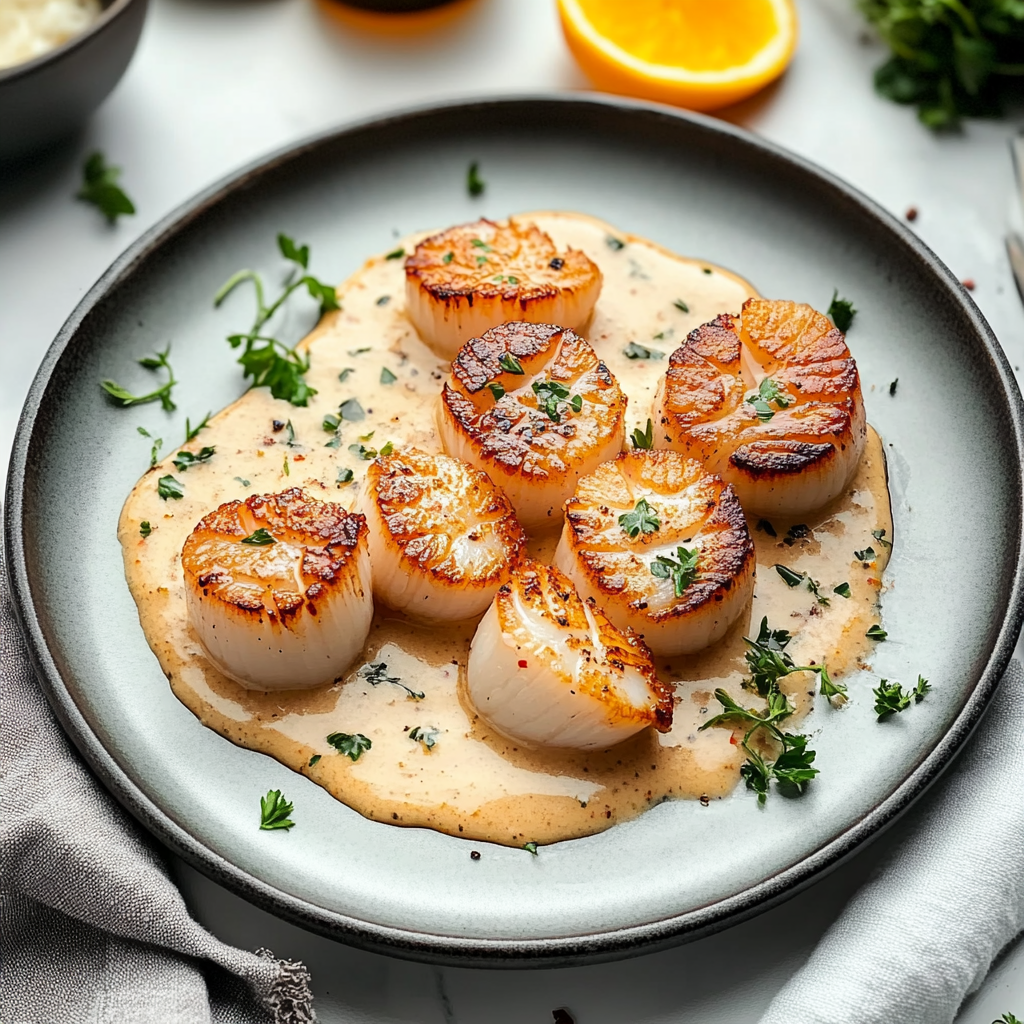 Easy Seared Scallops Recipe with Spicy Cajun Cream Sauce