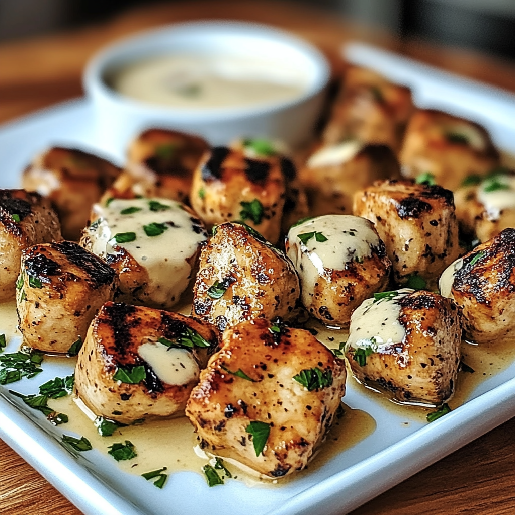 Irresistible Creamy Garlic Sauce with Grilled Chicken Bites