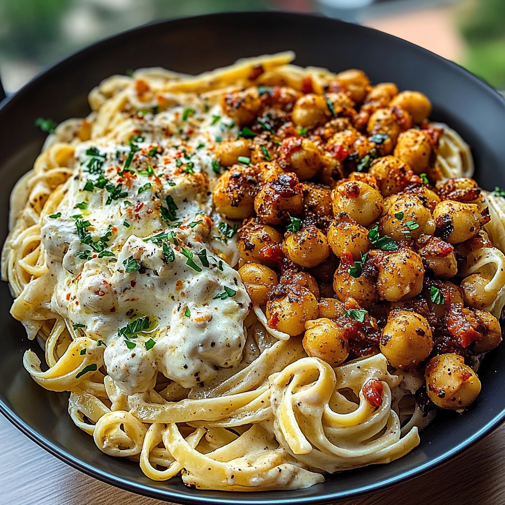 Irresistible Creamy Cajun Chicken Pasta with Feta & Crispy Chickpeas