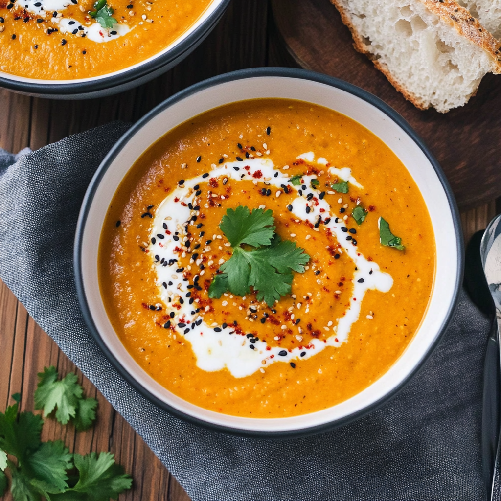 Irresistible Spicy Sesame Carrot Soup with Red Lentils
