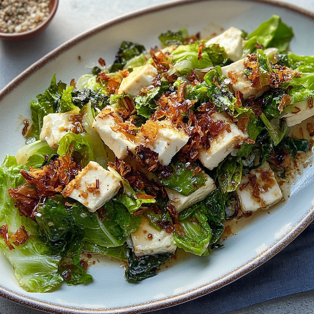 Silken Tofu With Crunchy Lettuce & Fried Shallots Recipe