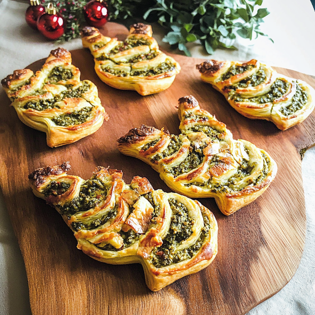 Start by preheating your oven to 400°F (200°C). While it heats, roll out your puff pastry into a tree shape. Spread the basil pesto evenly before layering on the cheese. Finally, bake until golden brown for an irresistible aroma.