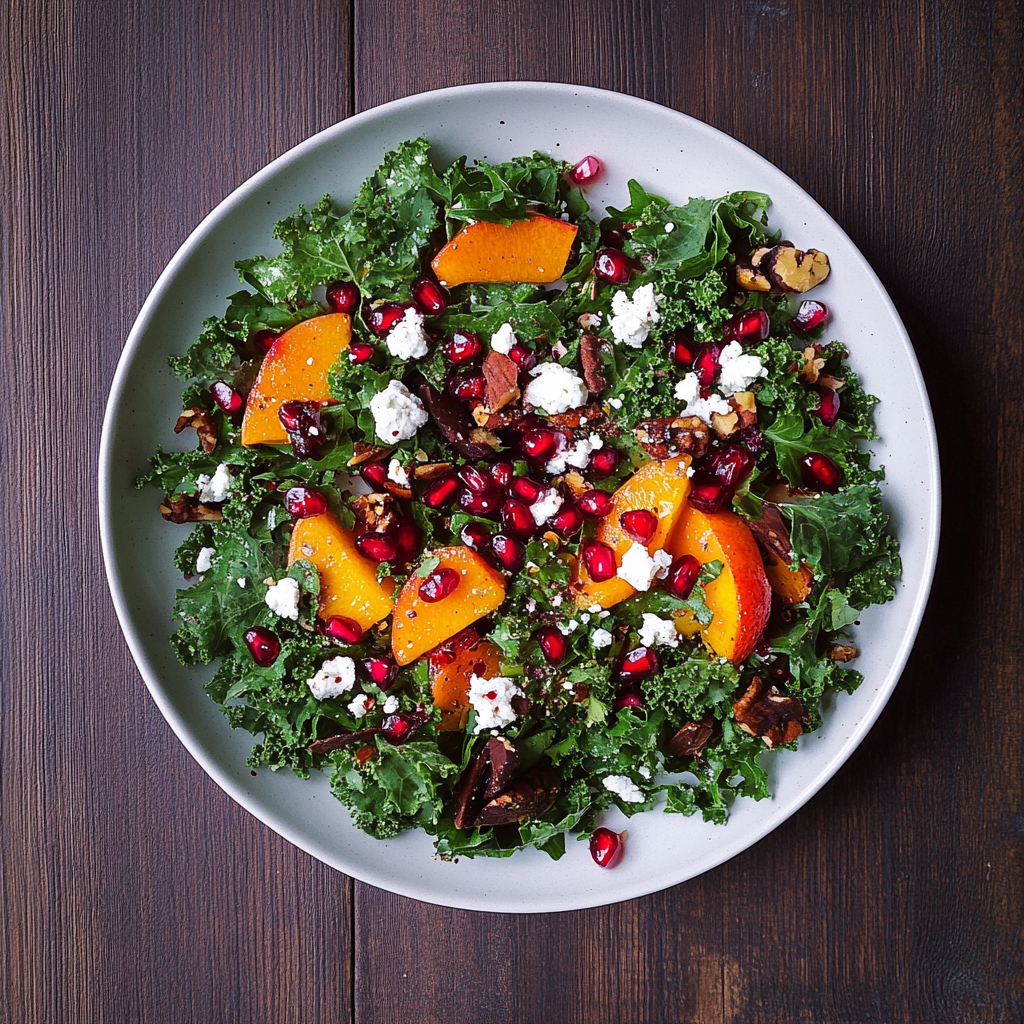 In summary, a Holiday Salad with Kale, Persimmon and Pomegranate is an excellent choice for festive gatherings or everyday meals. It combines vibrant flavors with impressive nutritional benefits from nutrient-rich ingredients like kale, persimmons, and pomegranates. Preparing this salad is simple and can be done ahead of time for added convenience. Enjoying this colorful dish not only delights your taste buds but also promotes health during the holiday season! For more inspiration, check out this festive breakfast delight recipe.