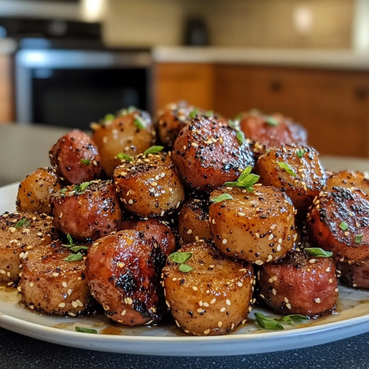 7. Serve and Garnish: Transfer the bites to a serving platter, drizzle with the reserved glaze, and sprinkle with chopped chives or green onions for a colorful touch. Enjoy them warm!