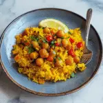 Turmeric Rice with Crispy Chickpeas pairs beautifully with various dishes. Consider serving it alongside grilled vegetables or roasted meats like chicken or lamb for a hearty meal. It also complements curries well, providing a vibrant base to soak up the rich sauces. For a lighter option, serve it with a side salad drizzled with lemon vinaigrette to balance flavors and textures. For more inspiration, check out this Savory Moroccan Spiced Salmon recipe.