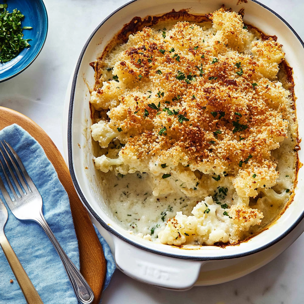 Start by preheating your oven to 375°F. Cook the cauliflower florets until tender. Meanwhile, prepare the creamy cheese sauce on the stovetop. Once ready, combine everything in a baking dish, top with breadcrumbs, and bake until golden brown for perfect results.