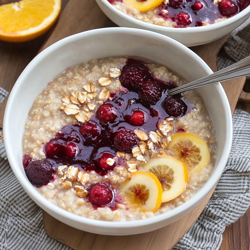 Cranberry Orange Steel Cut Oatmeal is a warm and nutritious breakfast that beautifully combines the nutty flavor of steel-cut oats with the tartness of fresh cranberries and the zesty brightness of orange. This delightful dish not only awakens your senses but also provides a hearty start to your day, packed with fiber and antioxidants. Perfect for chilly mornings, enjoy it warm or as a refreshing overnight option.