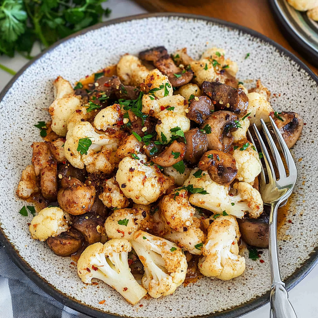 Garlic Mushrooms Cauliflower Skillet is a quick and flavorful dish that elevates simple ingredients into a gourmet experience. The earthy flavors of sautéed mushrooms and tender cauliflower are perfectly enhanced by aromatic garlic, making it an ideal choice for cozy dinners or impressing guests. With its vibrant colors and satisfying textures, this skillet meal is both nutritious and versatile, perfect as a side or main dish.
