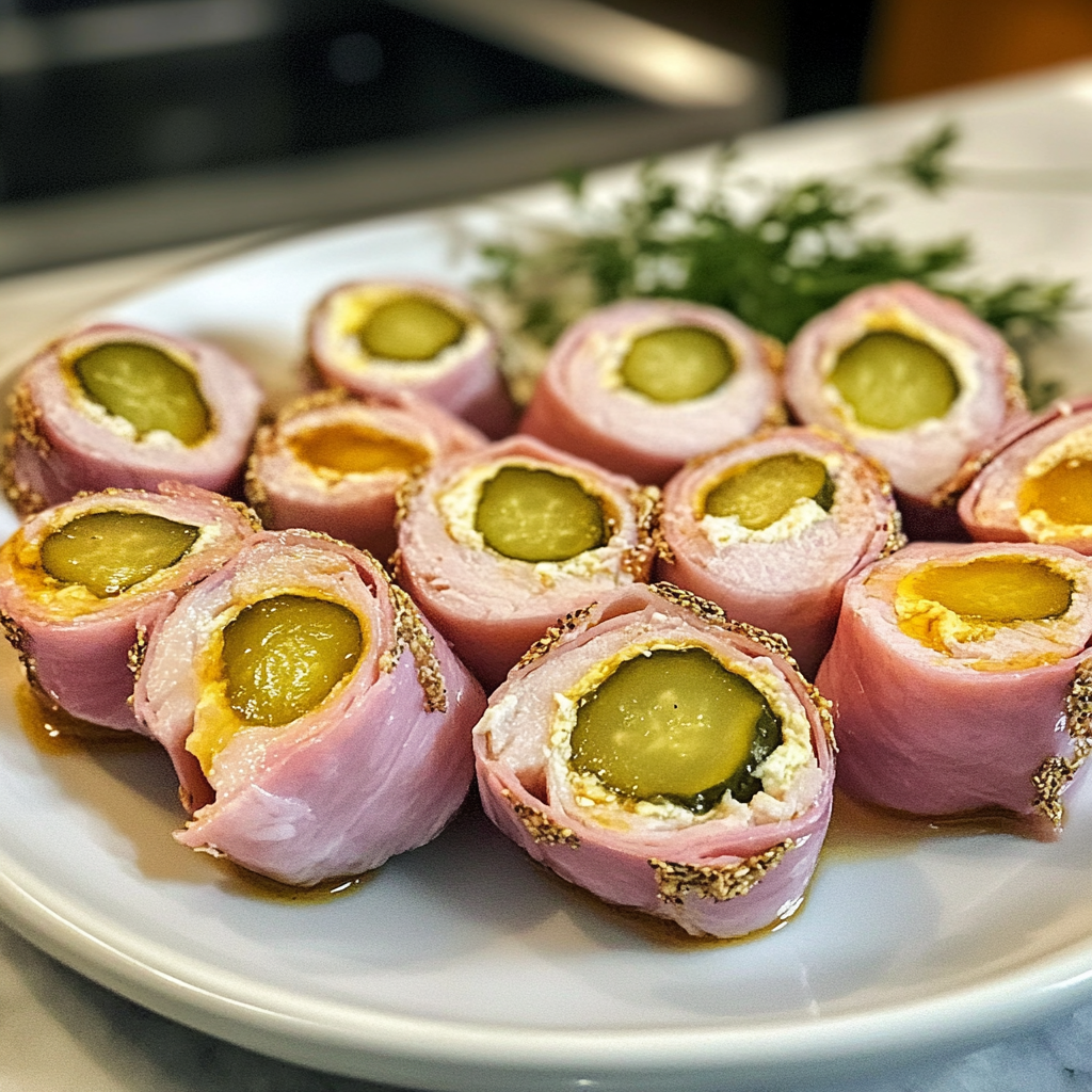 Start by laying out your ham slices, then place a pickle at one end and roll it up tight. Secure with a toothpick if necessary, and serve chilled. This method ensures each bite is bursting with flavor and makes assembly a breeze.
