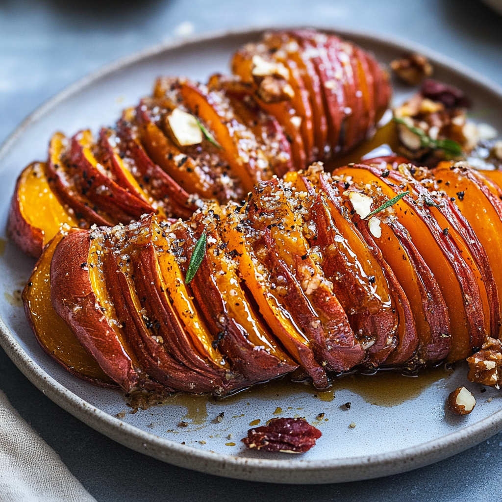 Absolutely! You can customize your Hasselback Sweet Potatoes with Maple Syrup by adding different toppings or spices. Consider using cinnamon, nutmeg, or even crushed nuts to add texture and flavor. You can also swap maple syrup for honey or agave syrup if you prefer. The versatility of this dish allows you to experiment with various ingredients to match your taste preferences.