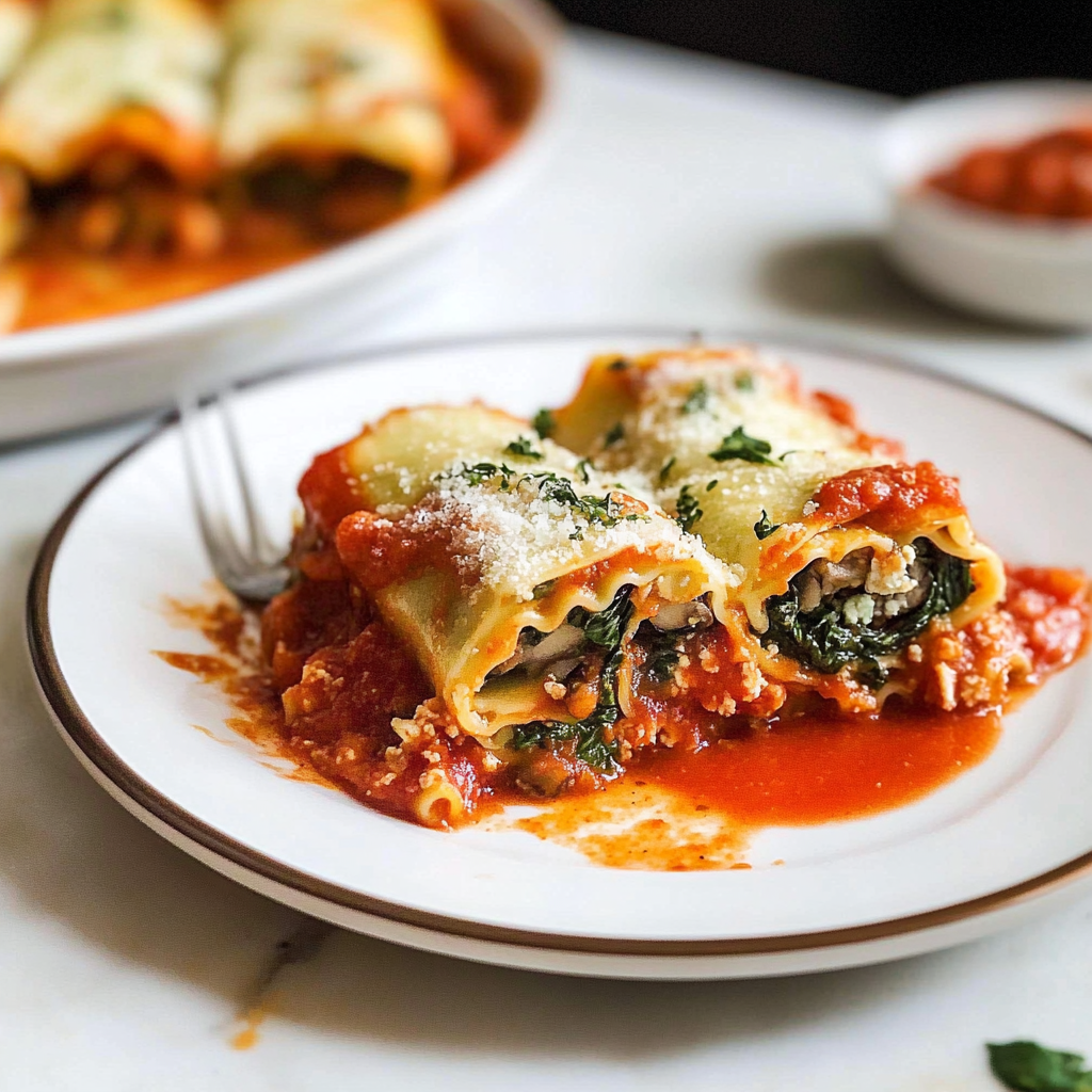 And there you have it! A delightful dish that combines comforting flavors with an elegant presentation perfect for any occasion. Enjoy every gooey bite of these Mushroom and Spinach Lasagna Roll Ups!