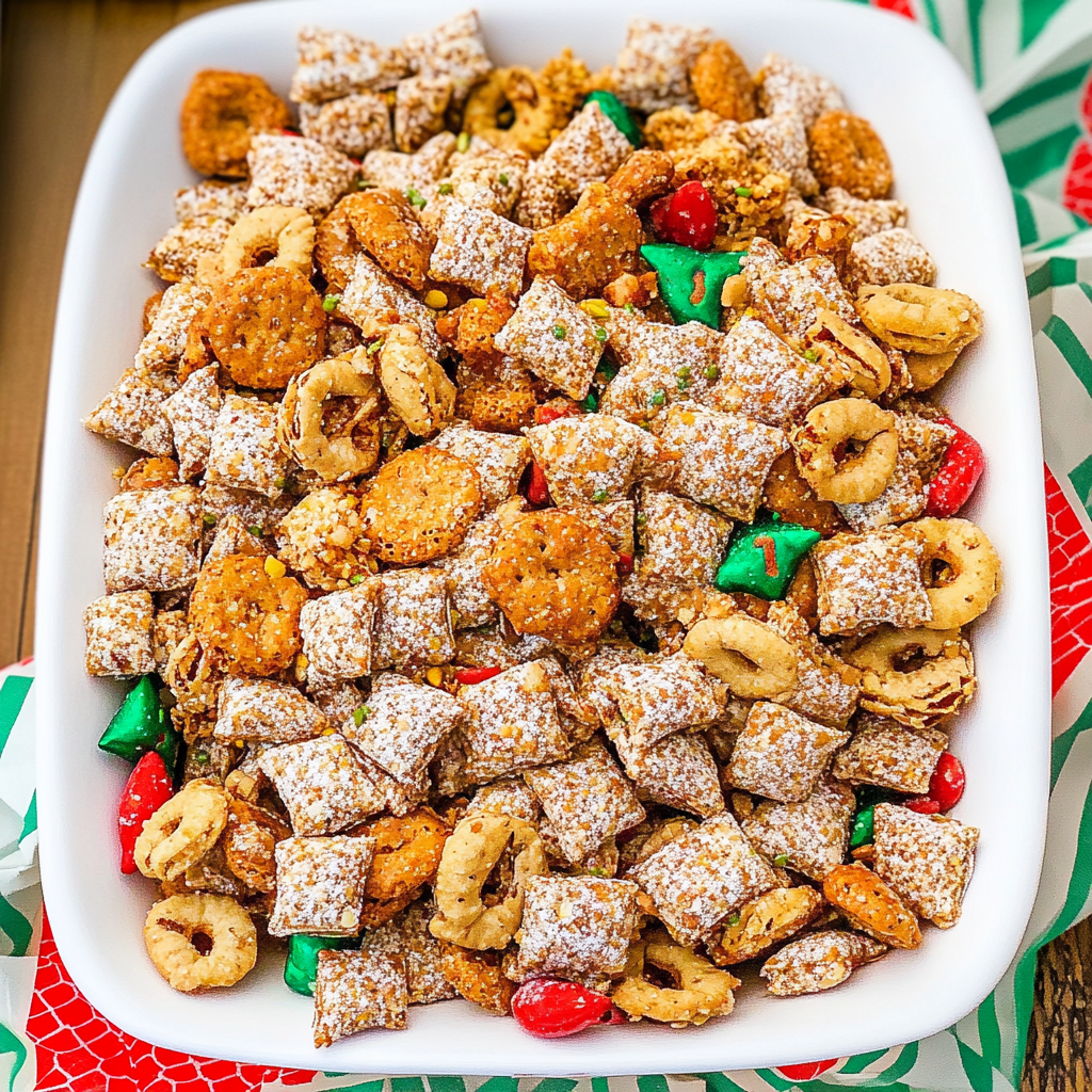 Reindeer Chow is the Christmas snack mix that combines sweet and savory flavors, perfect for the festive season. To make this delightful treat, start with a base of Chex cereal, and then mix in ingredients like pretzels, M&Ms, and peanuts. holiday cookie delight Coat everything with melted white chocolate and toss in powdered sugar for a snowy finish. pumpkin chocolate chip cookies This easy recipe can be customized with your favorite snacks, making it versatile for holiday gatherings or gift-giving.