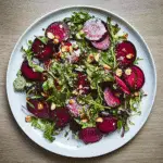 Roasted Beet Salad with Goat Cheese & Pistachios is a colorful and delicious dish that elevates any meal. The sweet, earthy beets are roasted to perfection, pairing beautifully with creamy goat cheese and crunchy pistachios. This salad not only delights the palate but also provides a visual feast, making it an ideal choice for dinner parties or light lunches. Easy to prepare yet impressive in presentation, it’s a must-try for any culinary enthusiast.
