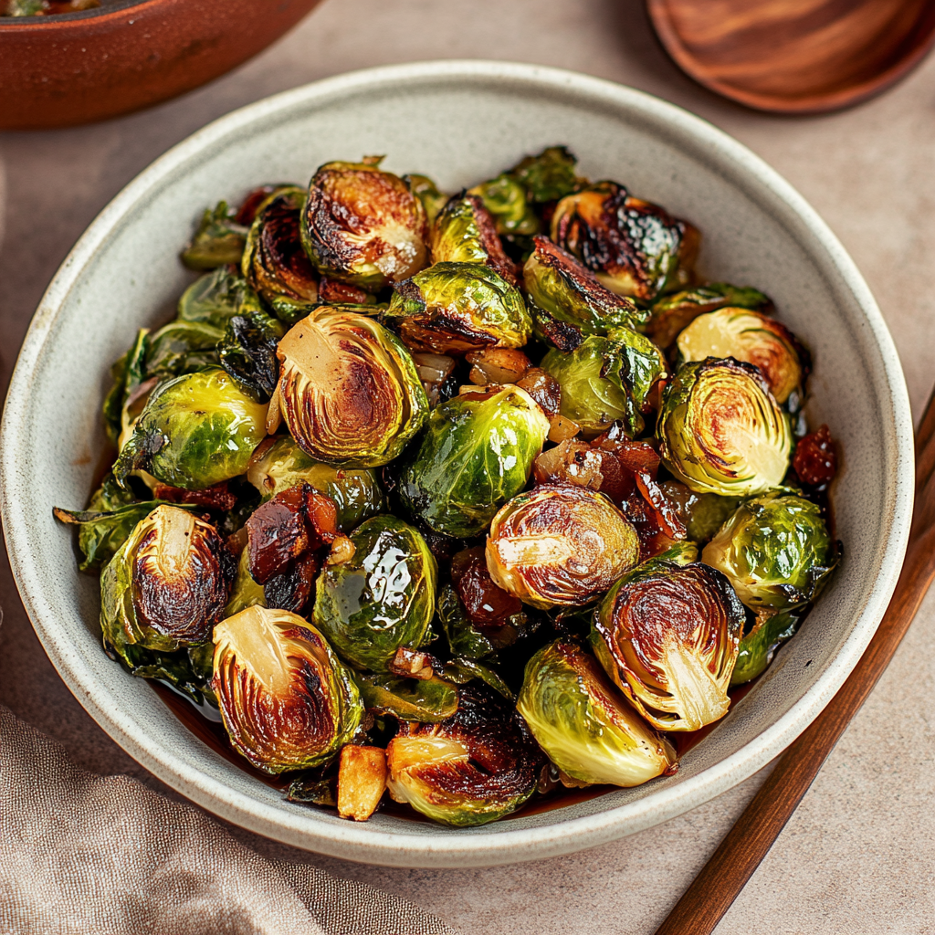 - Drizzle the glaze over the roasted sprouts, toss gently, and return to the oven for an additional 5–10 minutes before serving.