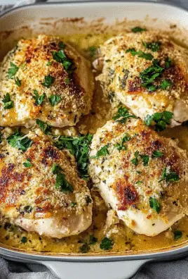 Pop your baking dish into the preheated oven and bake for about 25-30 minutes until the chicken is cooked through and reaches an internal temperature of 165°F (74°C). Your kitchen will smell divine during this time!