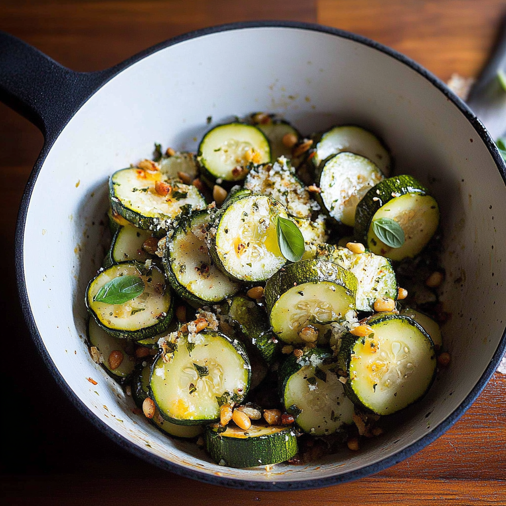 Start by toasting the pine nuts in a dry skillet until golden. Meanwhile, slice the zucchini into half-moons and chop your herbs. Sauté the zucchini first, then stir in the herbs and nuts for a glorious finish.