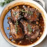 To serve, transfer those glorious lamb shanks onto plates with some of that rich sauce spooned over—trust me; it’ll be worth every minute spent waiting! Enjoy alongside some creamy mashed potatoes or crusty bread to soak up all that deliciousness!