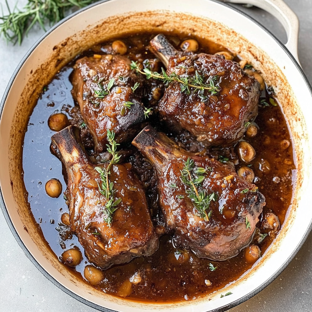 Indulge in the comforting delight of slow-cooked lamb shanks, where tender meat falls off the bone and is enveloped in a rich, savory sauce. This dish evokes cherished family memories while delivering an unforgettable dining experience. Perfect for gatherings or cozy dinners, these lamb shanks promise to tantalize your taste buds and warm your heart.