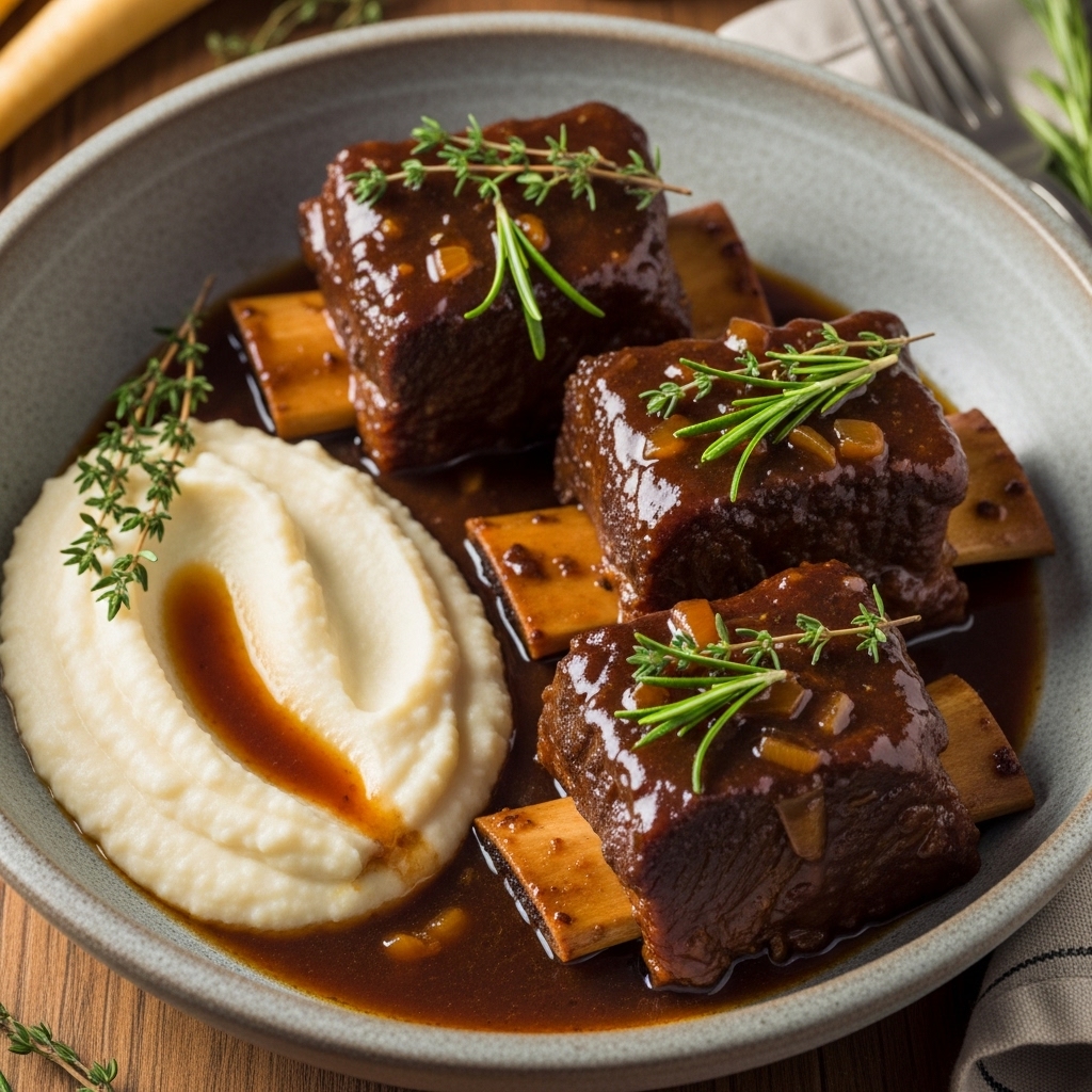 Irresistible Slow Cooker Braised Short Ribs with Parsnip Puree
