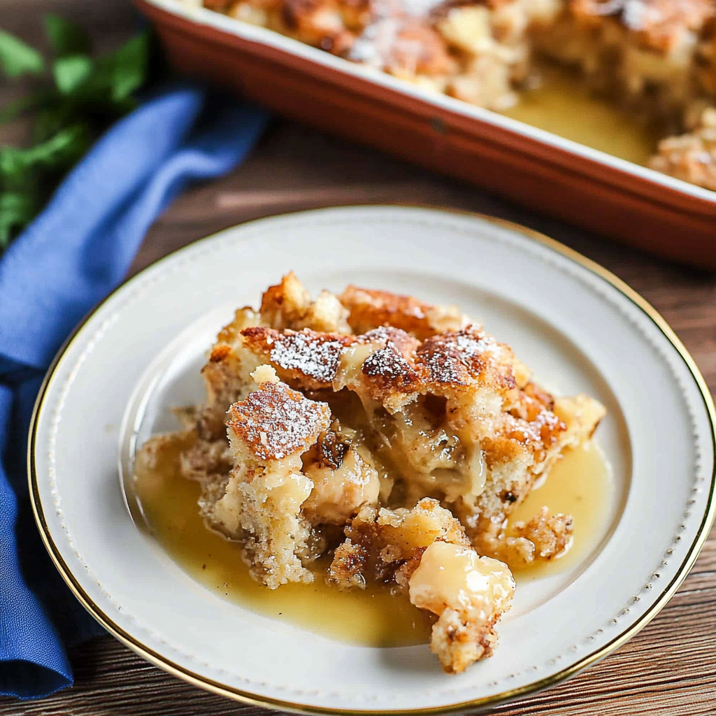 Sourdough bread pudding is a decadent dessert that turns stale bread into a warm, comforting treat. With a crispy, golden crust and a creamy custard center, this dish is infused with the tangy flavor of sourdough, complemented by rich vanilla and aromatic cinnamon. Perfect for holidays or cozy weeknights, this simple yet indulgent recipe is bound to become a family favorite.
