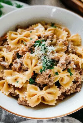 Creamy Beef and Bowtie Pasta with Alfredo Sauce Recipe