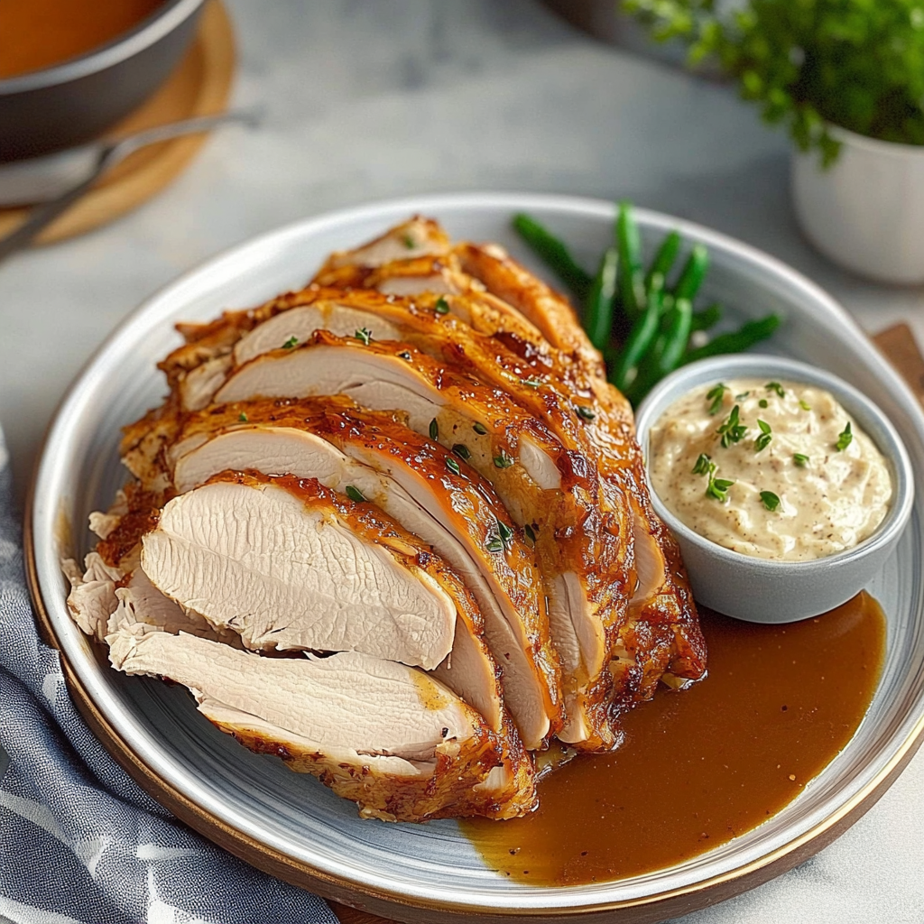 Slice the turkey breast against the grain into nice pieces. Transfer slices onto plates and drizzle with rich gravy for that Instagrammable finish.