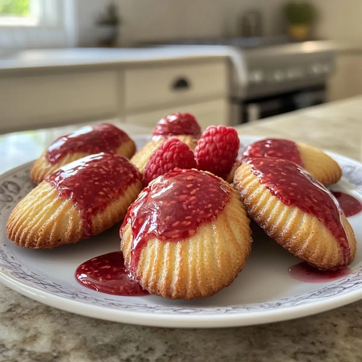 Dip these delightful Raspberry Rose Water Madeleines in glaze for a sophisticated finish that will leave everyone asking for seconds!