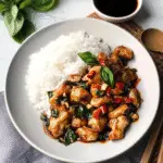 Thai Basil Chicken pairs wonderfully with steamed jasmine rice or coconut rice to soak up the rich sauce. You can also add a side of stir-fried vegetables for extra nutrition and color on your plate. For those who enjoy heat, serving it alongside sliced cucumbers or a spicy dipping sauce can enhance the meal’s flavor profile.