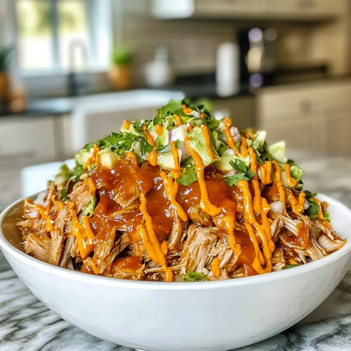• Assemble Bowls: In each bowl, layer your rice or quinoa first, then pile on the shredded pork, followed by fresh veggies, avocado slices, and a squeeze of lime.