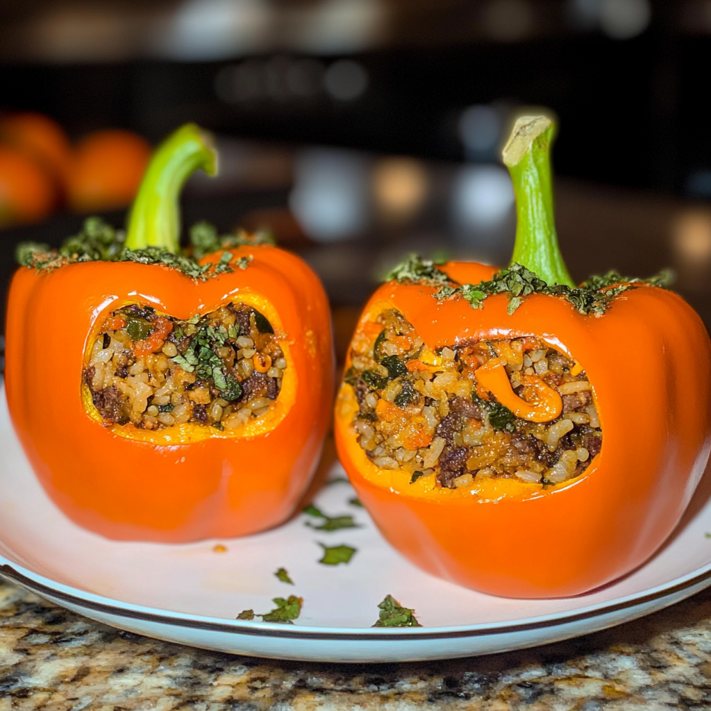 Transfer to plates and serve hot! Drizzle with your favorite hot sauce if you’re feeling adventurous—it’s all about customizing your spooky stuffed peppers with rice and beef experience!
