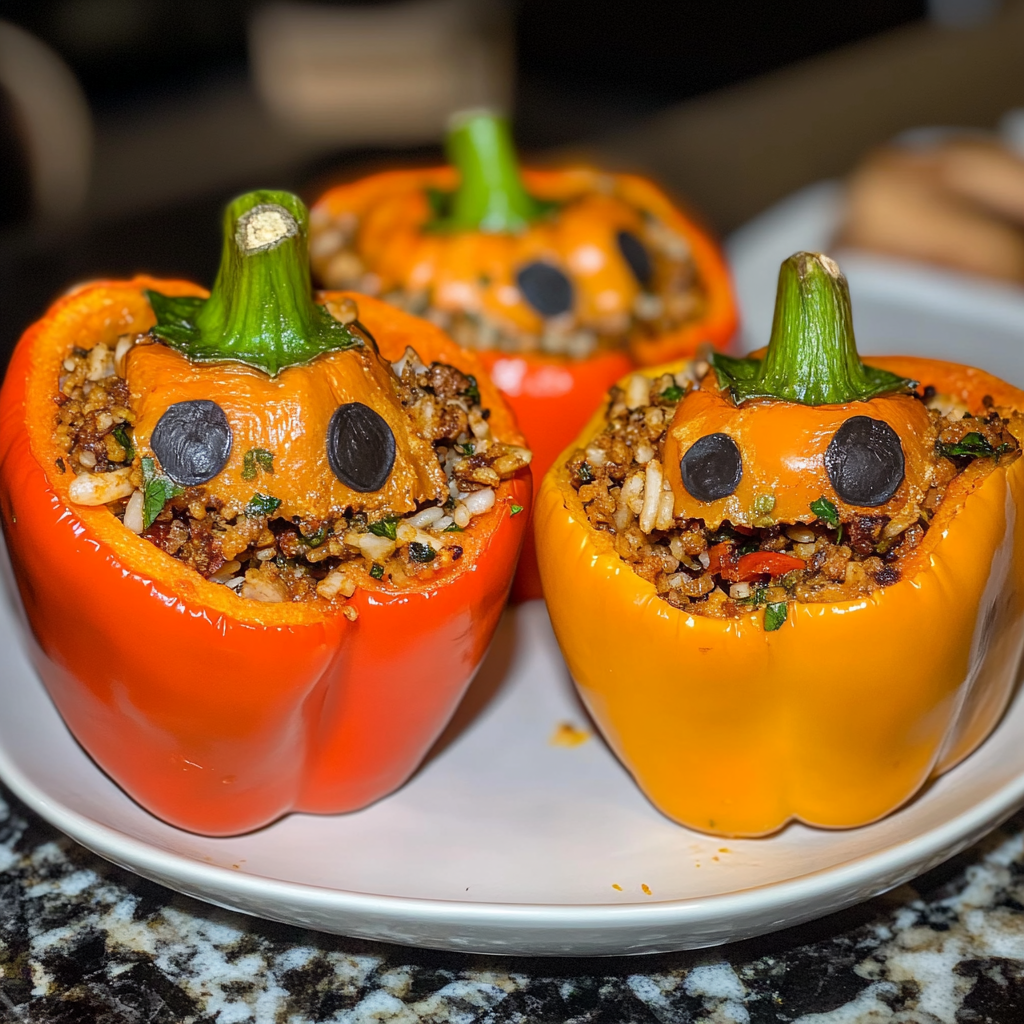 - Spooky stuffed peppers with rice and beef combine a playful presentation with mouthwatering flavors.