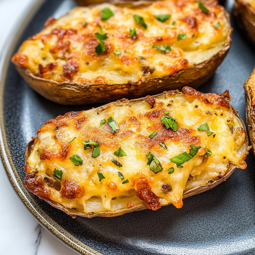 Start by baking your potatoes until they’re tender, then scoop out the insides while leaving a bit of potato for structure. Mix the scooped potato with butter, cheese, and your favorite seasonings before stuffing it back into the skins. Finally, give them a second bake for that perfect crisp.